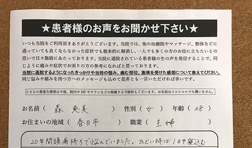 「どこに行っても良くならない」と本当にお困りの人がいましたら、乗冨先生の整骨院を自信を持って推薦します。
